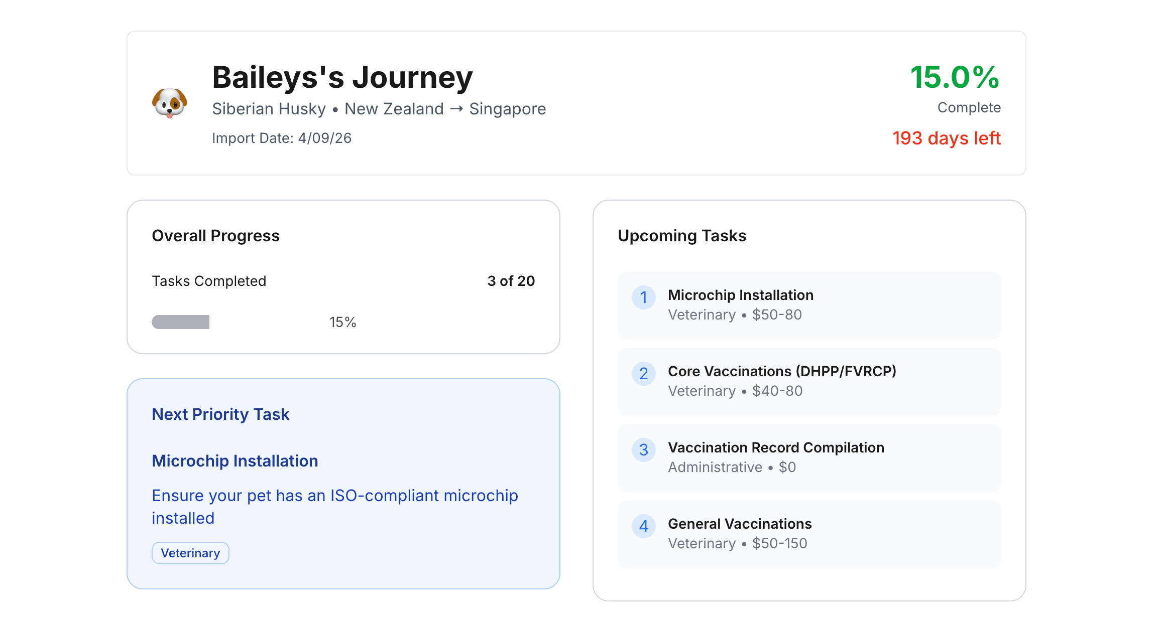 One Pawsport help pet owners handle the complex importing and relocation process. Complete transparency, real-time tracking, and expert handling from origin to your destination.